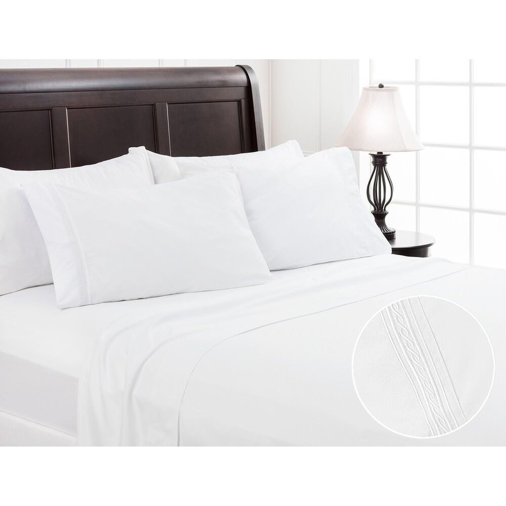 Chanasaya Home 4-Piece King Solid Embroidered Sheet Set in White