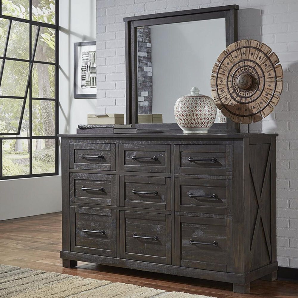 Our Sun Valley Collection evokes the rustic style of early America with a distinct charcoal finish that highlights the natural character of the solid pine. Each bed style includes striking headboard storage that is accented with industrial handles and metal casters. | Package Includes | |
