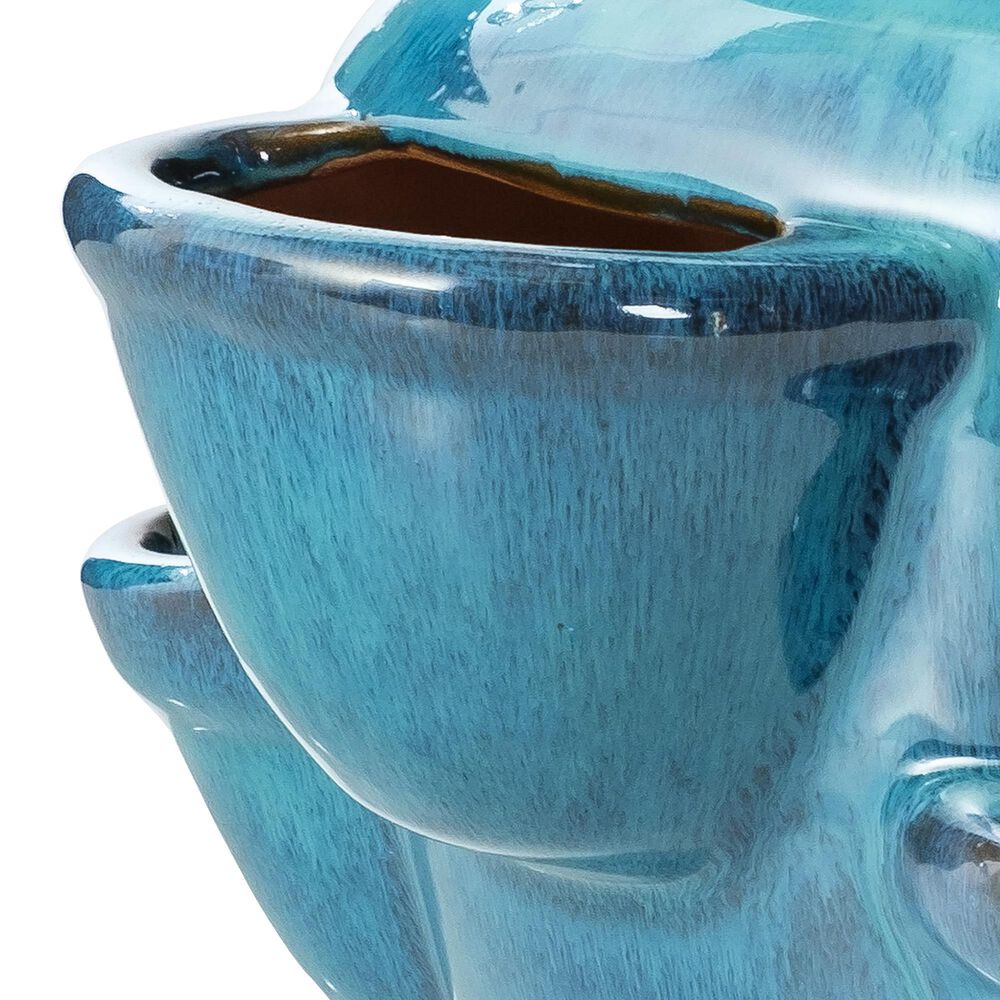 Six Pocket Ceramic Strawberry Jar-Aqua is a beautifully crafted planter designed to add charm to your garden or home. This planter is not only functional but also serves as a decorative piece, enhancing the aesthetic appeal of any space.