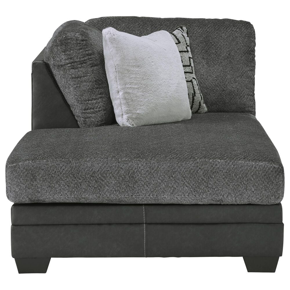 The Ashley 2 Piece Sectional in Brixley Pier Graphite is a stylish and contemporary furniture piece designed to enhance your living space. Ultra-contemporary with a chic and sleek look in dark neutrals. Combines cozy fabric with faux leather for a modern and inviting appearance.