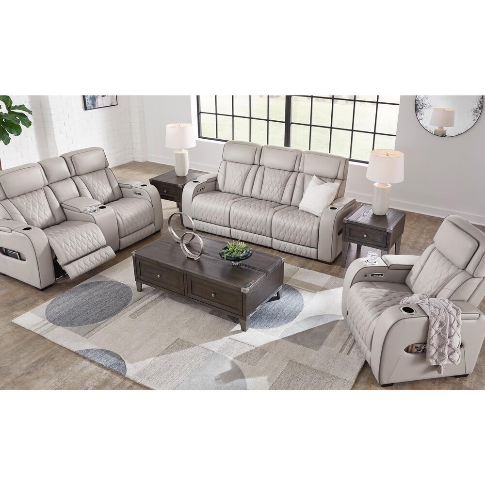 Ashley Boyington Power Reclining Loveseat with Console in Gray