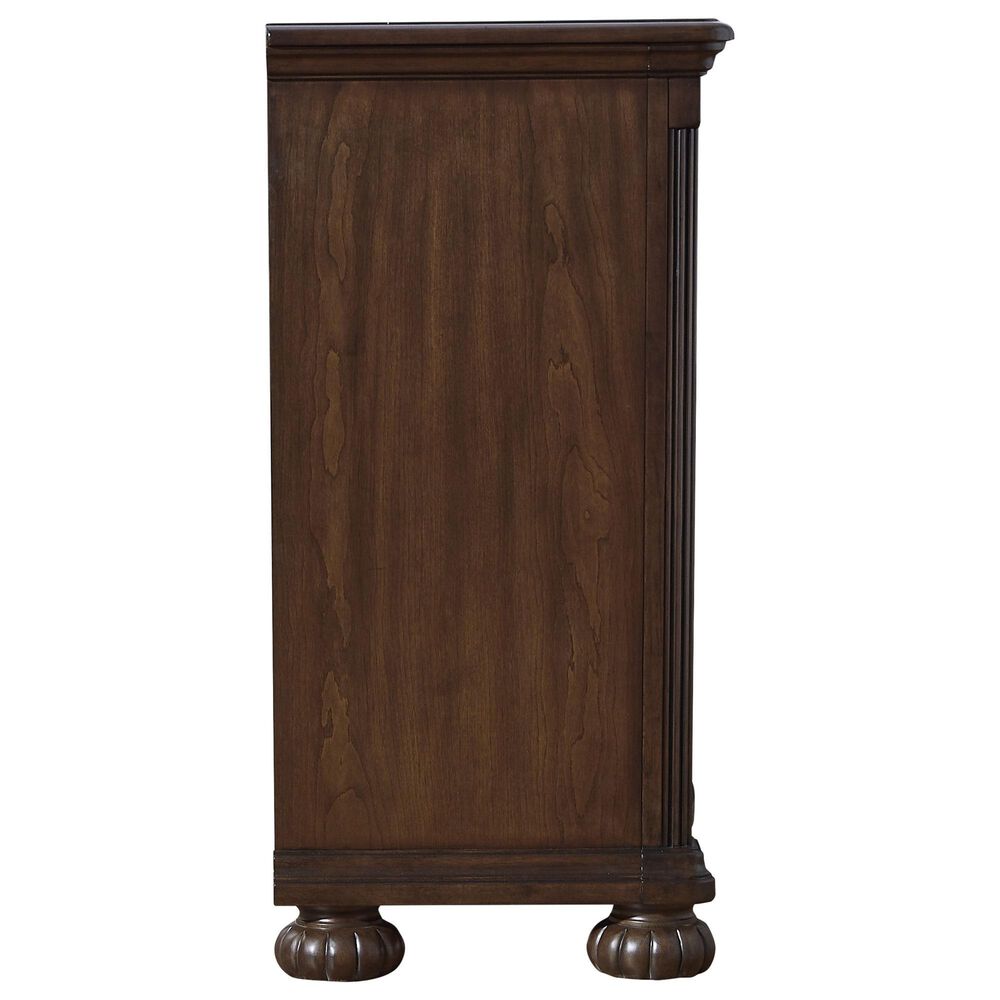 Take inspiration from the traditional luxury of this dresser. Classic with a rich cherry brown finish, its stately presence graces your room with an air of opulence. Your taste for exquisite details is satisfied with decorative drawer pulls and chic bun feet. With seven drawers acting as elegant hosts for clothes and other essentials, your restful retreat has never been so refined.