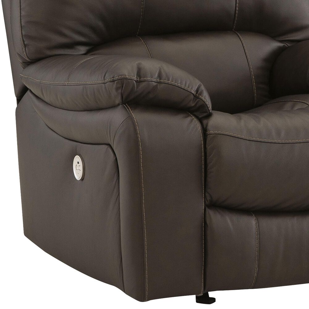 Focus on function. This practical power rocker recliner balances contemporary character and irresistible comfort. Its affordable, expertly matched leather and faux leather upholstery keeps your style up to speed without breaking the bank. Reclining with the touch of a button, this piece plays well in relaxed, luxe seating areas made for quality time. Features