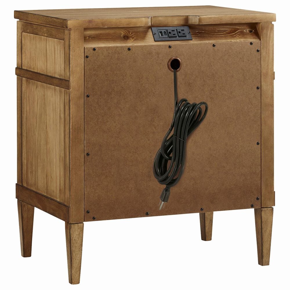 Taking a timeless approach to bedroom beauty, this nightstand brings easygoing elegance to the everyday. With its light brown wood tone, it seamlessly slips into your room's aesthetic. Dark bronze-tone pulls accent the drawers, adding to the nightstand's fresh approach to transitional stylings. And built-in USB charging makes scrolling before bed that much more convenient.What's Included