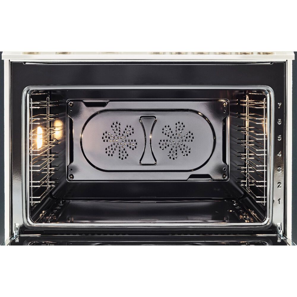 The new Bertazzoni ranges are superb cooking appliances designed, engineered and made in Italy. All Bertazzoni appliances integrate seamlessly into style-harmonized suites for a true, high-performing kitchen. This all-new induction range has 4 high-power heating zones with maximum power output of 3700W. The right-side heating zones can be bridged to create a larger cooking area. Each induction area is controlled with knobs and has a convenient read-out interface on the glass worktop. The 4.7 cubic feet oven cavity is the largest in its class, with dual convection fan for balanced airflow and even temperature baking and roasting on 7 shelf levels. The elegant large temperature gauge monitors the actual temperature in the oven. The extra wide electric broiler with optional convection is ideal for grilling and searing at high heat. The soft-motion oven door with edge-to-edge tempered glass is a masterpiece of European engineering and makes the oven door very easy to wipe clean. The stainless steel racks included with the range can be equipped with optional telescopic glides. All Bertazzoni appliances are covered by a 2-year warranty.