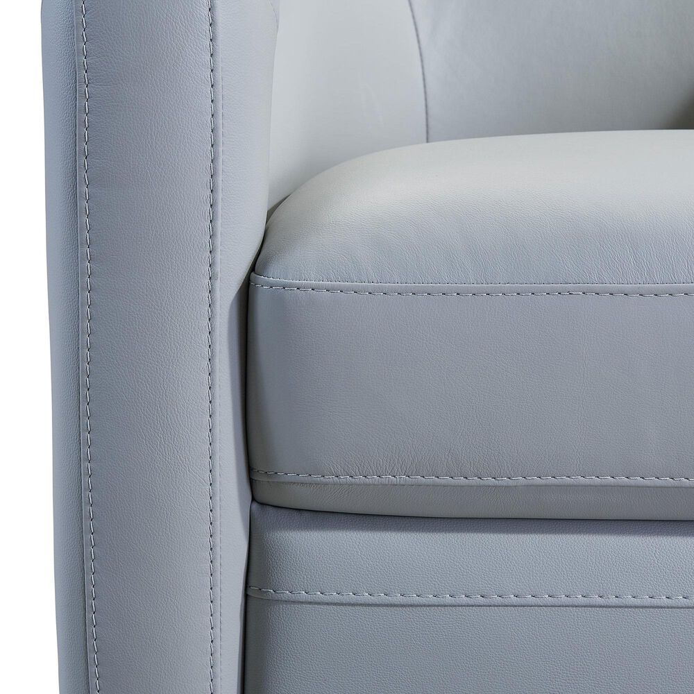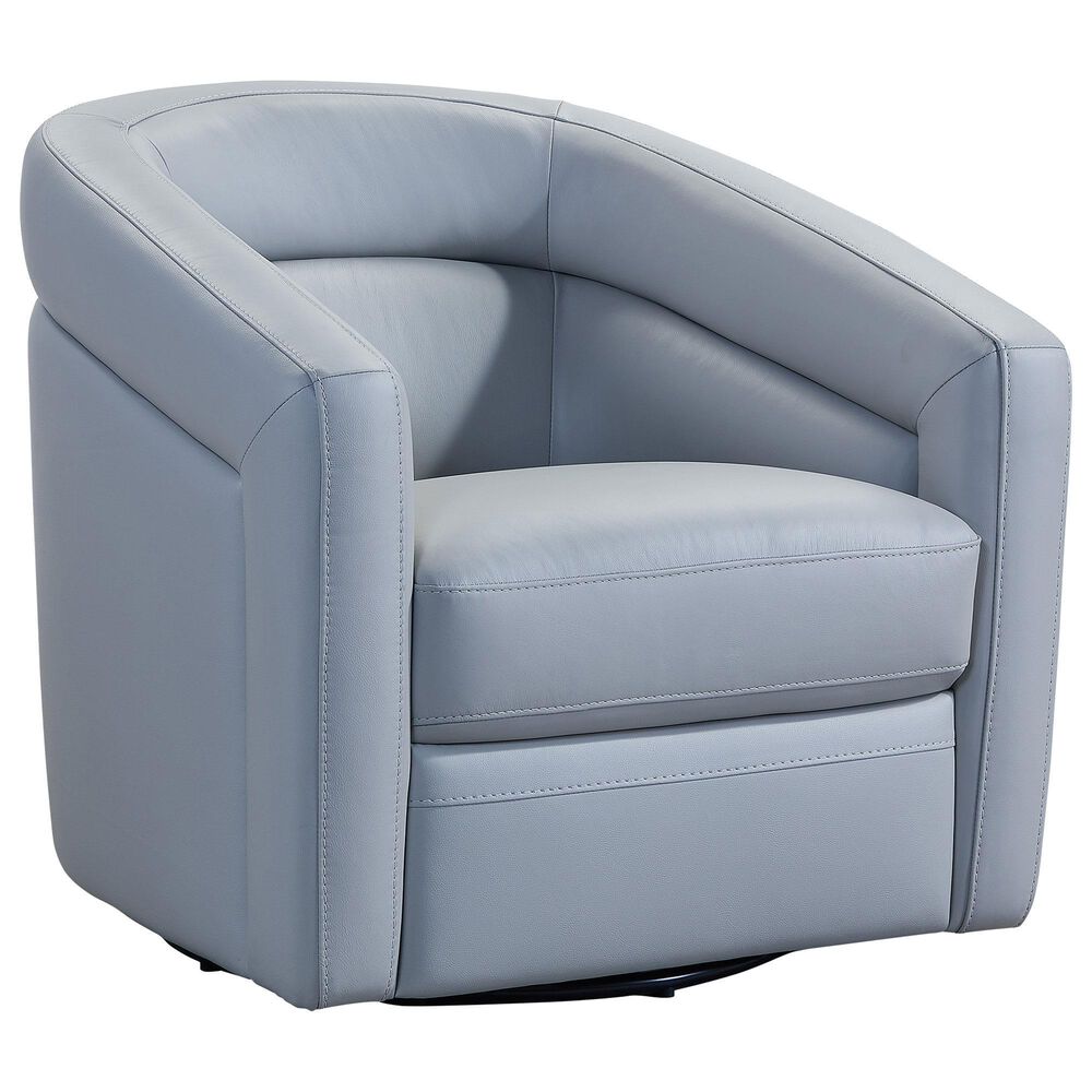 The Armen Living Desi living room swivel accent chair includes a plump, comfortable padded design and a turning base that allows for maximum user mobility. This combination of features provides an enhanced user experience without compromising on the chair's elegant contemporary aesthetic quality. The beautiful Desi is constructed from durable wood and high-quality metal, assuring exceptional longevity for many years to come. The chair's sleek 100 percent genuine leather upholstery and high-resiliency 2.2 density foam cushioning offers superior user comfort and support. The Desi's tall arms, padded cushion, and rounded back design assure relaxation after a long day of work. It is the perfect size accent chair that is ideal for compact spaces or any space in your home. The foundation of the product is supported by solid wood for a sturdy and stylish aesthetic without comprising practicality and functionality of this item. This item is a versatile piece that can be ideal for living room, bedroom, family room or even as a desk chair. This product ships in one box with easy and quick set up. We stand by the quality, the craftsmanship and the integrity of our product by offer 1-year warranty for all our products. A wonderful piece for the living room, the Desi is certain to satisfy.