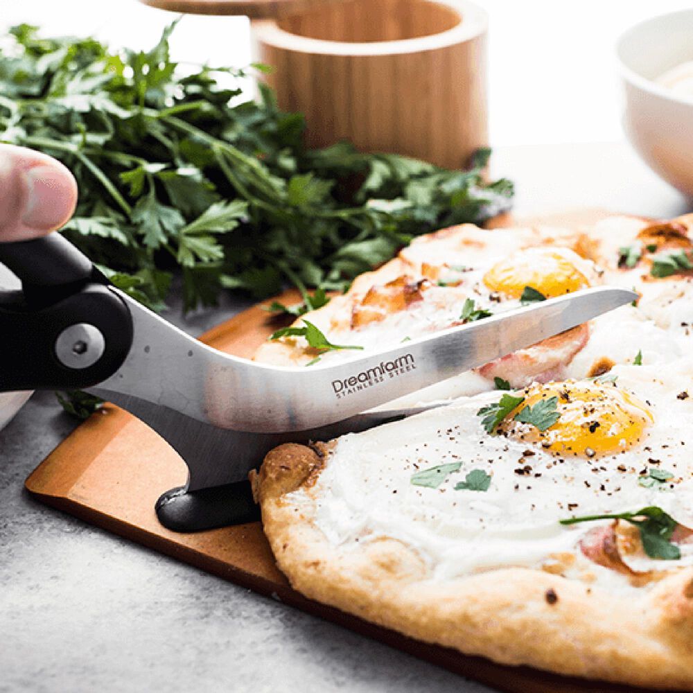Scizza is the best thing since sliced bread itself. It's a pizza cutter that perfectly slices any pizza, on any surface and can also be used to serve. Scizza has a clever spatula base that slides under your pizza so the blades don't scratch your non-stick pans or dull on pizza stones (ahem, like a pizza wheel). Scizza's slicing action means your toppings stay in place, and with a gentle squeeze you can use it to serve your pizza too. Scizza makes easy work of thick crusts, deep dish pizza or flat breads. You can take the blades apart to sharpen them and it's even dishwasher safe - woo hoo!- Scizza's clever curved blades slice from above to keep your toppings in place and your hands away from your hot food