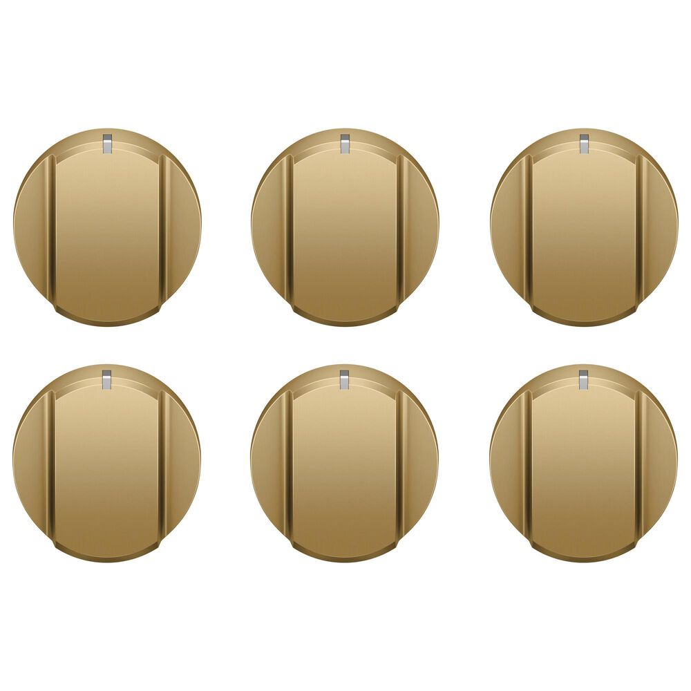 Complement your kitchen aesthetic and surrounding cabinetry with this brass color dial kit in a brushed satin finish for your Professional Gas Cooktop 36, 5 Burner.
