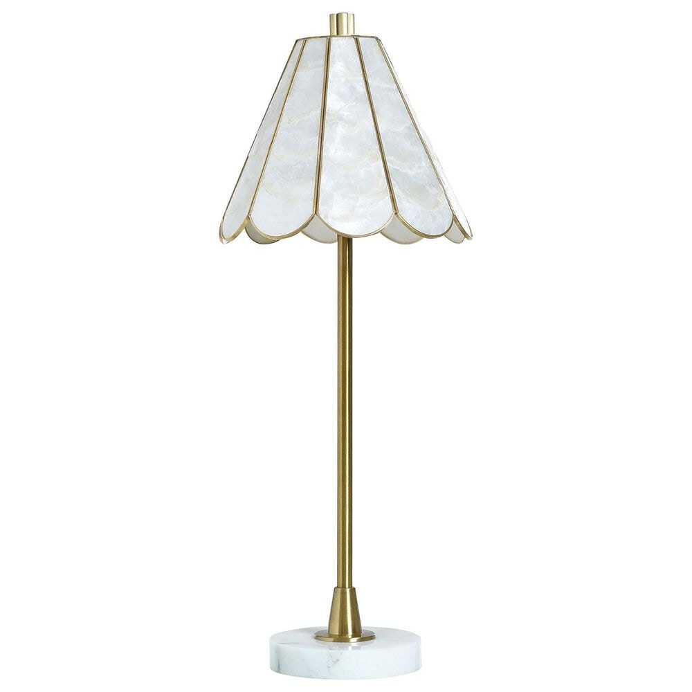 The Stylecraft Verity Brass Buffet Lamp is a stylish and elegant lighting option. It features a metal base with a brass finish, giving it a classic and sophisticated look.