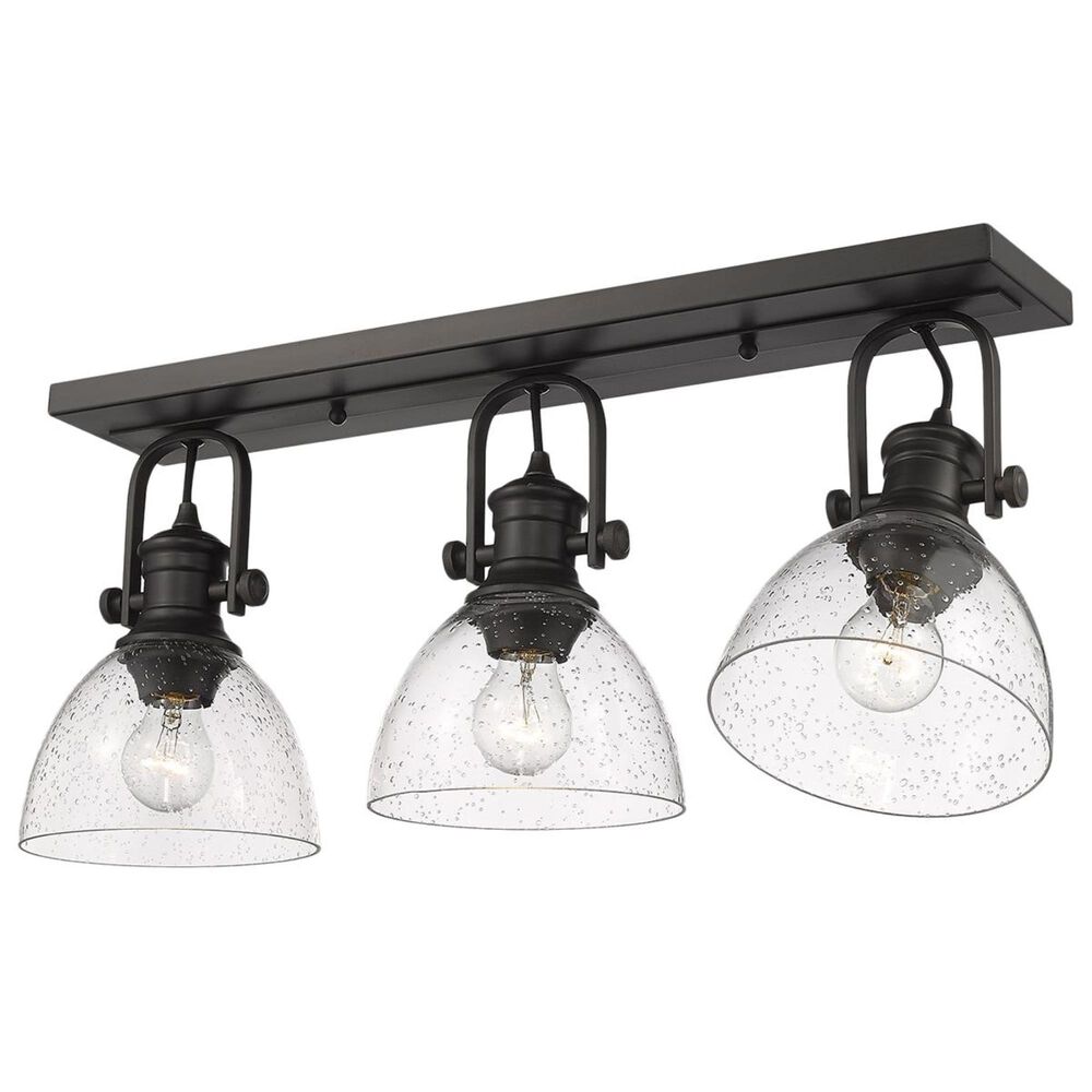 Golden Lighting Hines 3-Light Semi Flush in Rubbed Bronze with Seeded Glass, , large