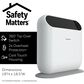 Take control of your comfort with the Honeywell ThermaWave 6 Ceramic Space Heater. Designed for medium to large rooms, this portable heater is a natural addition for introducing a steady supply of heat to living rooms, bedrooms, offices and more. Featuring two heat settings and a fan only mode, this portable heater also includes directional airflow. This will allow you to find that perfect balance of comfort when heating or cooling your surrounding area. Incredibly easy to use, this personal heater is accessible via its digital controls. Three timer settings and a programmable thermostat provide even more versatility to an already flexible heating and cooling option. The safety matters program is constantly evolving to ensure that Honeywell heaters are built with innovative, tried and tested safety features. The Honeywell ThermaWave 6 Ceramic Space Heater comes equipped with a series of these safety enhancements. Tip over protection means that your heater will promptly shut off when tipped over on its side, back or front. The portable heater also includes overheat protection that will immediately turn off the unit once it reaches an unsafe internal temperature. The addition of cool house touching provides a safe means of accessing or maneuvering your portable heater into another room. The sum of these safety matters enhancements ensures peace of mind when operating your portable heater.