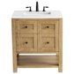 The white oak cathedral grain veneers brings this modern classic vanity to life. The 30" Breckenridge vanity in light natural oak with matte black mushroom-style knobs is modern farmhouse at its best. The faux-drawer style door opens up to an interior shelf and convenient dual power and USB outlet.