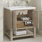 The beautiful Breckenridge 30" Single Vanity in Whitewashed Oak by James Martin Vanities features round satin nickel knobs that perfectly complement the clean look of this cabinet. The faux-drawer style door opens to an interior shelf with a convenient built-in USB/electric outlet. The lower shelf with extra storage for towels and decor completes the cabinet. The 3 cm White Zeus quartz top by Silestone is the perfect complement to the warm wood finish.