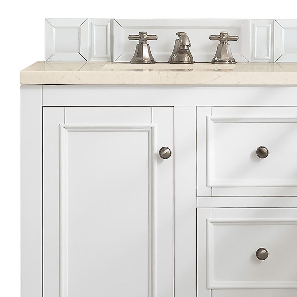 James Martin Vanities De Soto 30" Single Bathroom Vanity in Bright White with 3 cm Eternal Marfil Quartz Top and Rectangular Sink