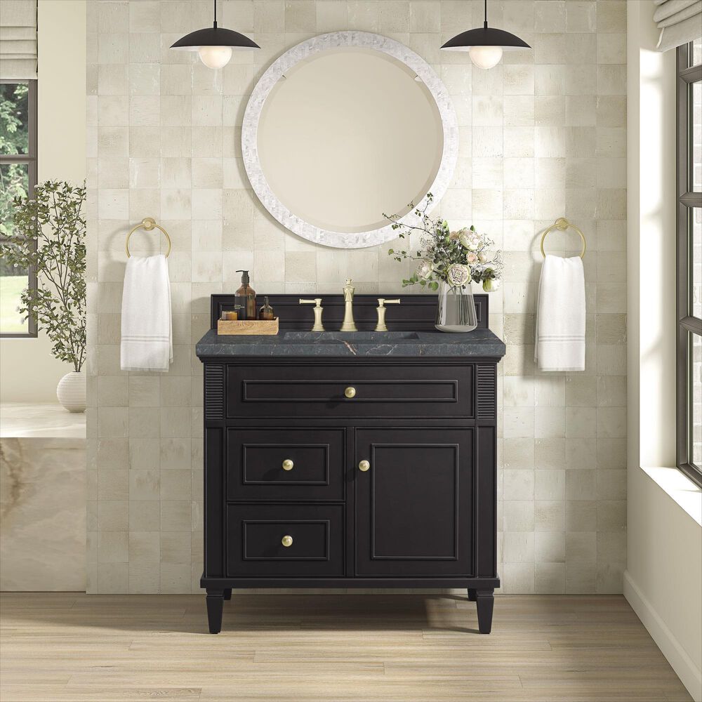 James Martin Vanities Lorelai 36" Single Vanity in Black Onyx with 3 cm Parisien Bleu Quartz Top