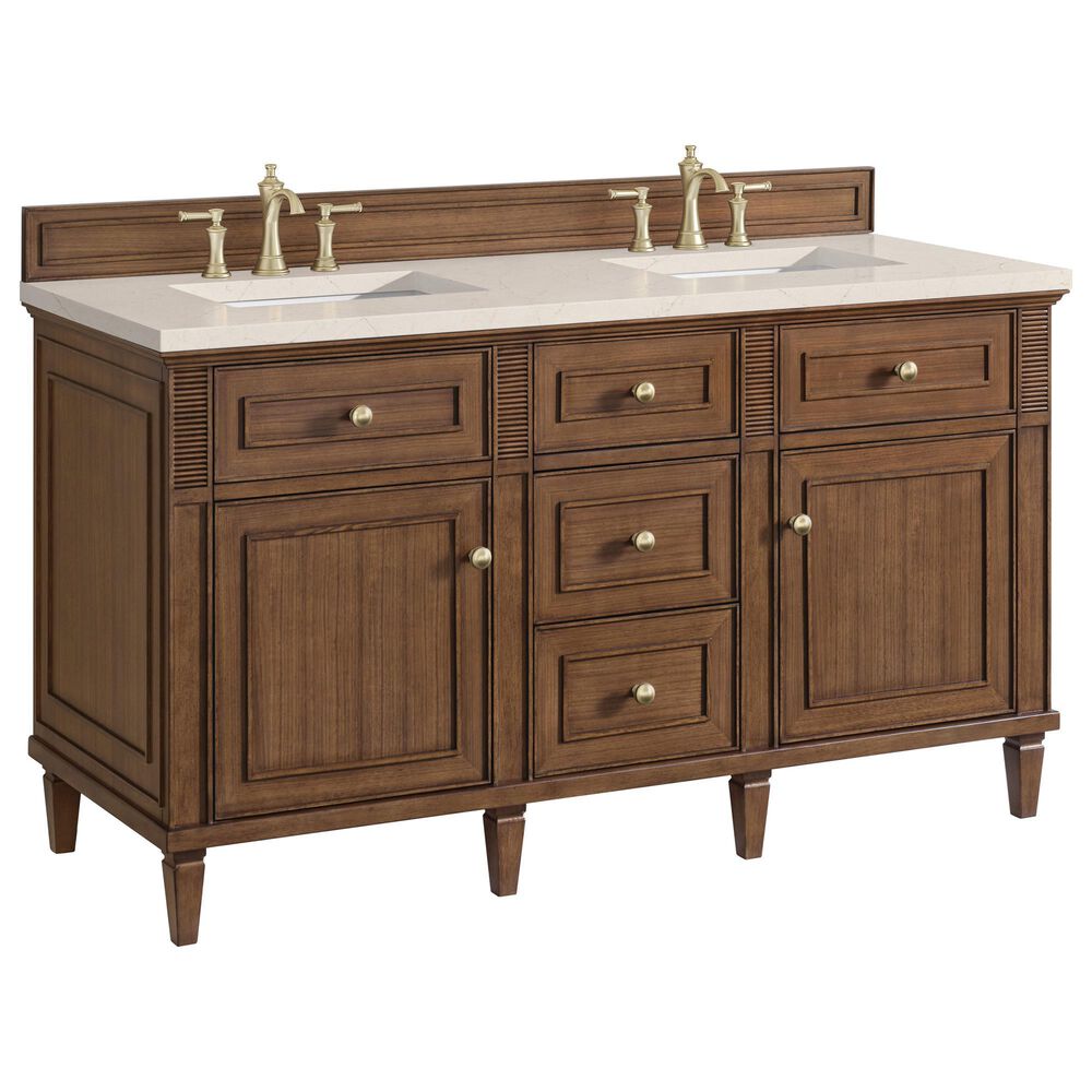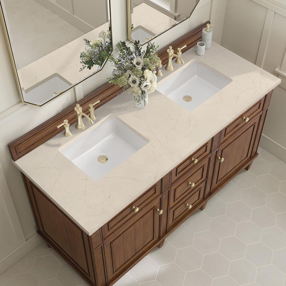 James Martin Vanities Lorelai 60" Double Vanity in Mid-Century Walnut with 3 cm Eternal Marfil Quartz Top