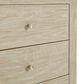 - The cerused Sunwashed Oak finish creates a captivating warmth, complemented by Champagne Brass hardware.