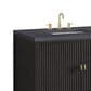 The 36" Myrrin Single Vanity features a minimalistic silhouette with fluted details, resulting in a blend of classical elegance and contemporary design. The deeply fluted panels run perpendicular on the doors and drawers, adding sophistication and visual interest to the design. Toggle-style knobs in Hardware: Champagne Brass provide a luxe accent to the sophisticated Carbon Oak finish. The two-door cabinet opens to a spacious interior with a single shelf and a convenient USB/Electric power outlet. A single, lower-level drawer lends additional storage. Completing this piece is a distinguished top, characterized by depth and a sense of movement with a suede finish. The Charcoal Soapstone Quartz top is a timeless statement to complete the look of your vanity.