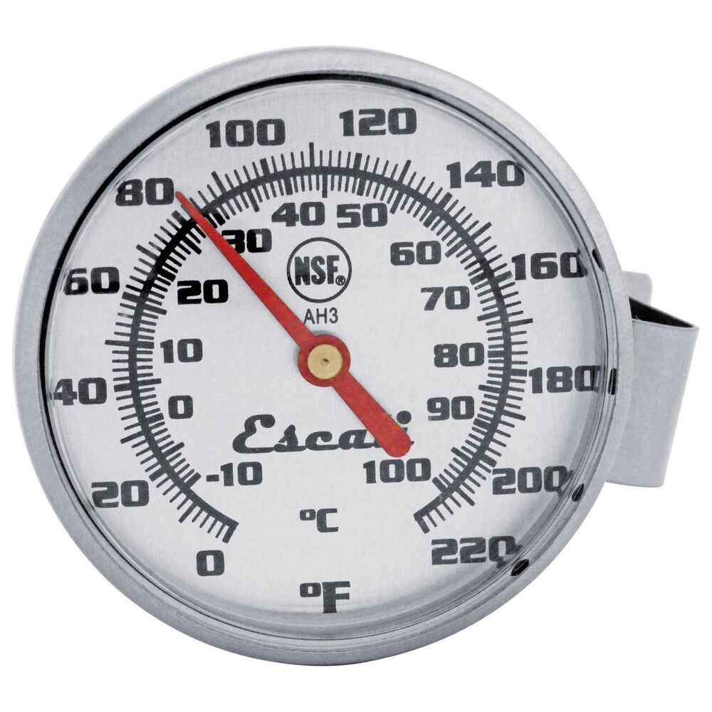 Life in the kitchen is easier when you use the right tool for the task. The Escali AH3 instant read large dial thermometer features a large easy-to-read dial display and stainless steel pot clip for safe hands-free measuring. It features both Fahrenheit and Celsius measurements, and it has a durable stainless steel design which is NSF certified.What's Included