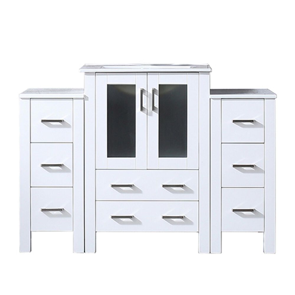 Lexora Home Volez 48" Single Bathroom Vanity in White with White Ceramic Top and Rectangular Sink