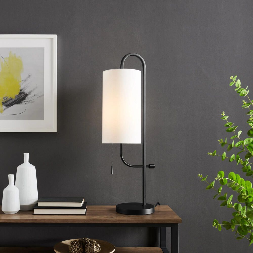 The Lite Source Xandra Table Lamp is a modern and stylish lighting piece designed to complement contemporary interiors. The Xandra Table Lamp features a sleek J-hook silhouette crafted from black-finished metal, paired with an off-white linen cylindrical shade. This combination offers a minimalist yet elegant look, ideal for modern living rooms, bedrooms, or offices.