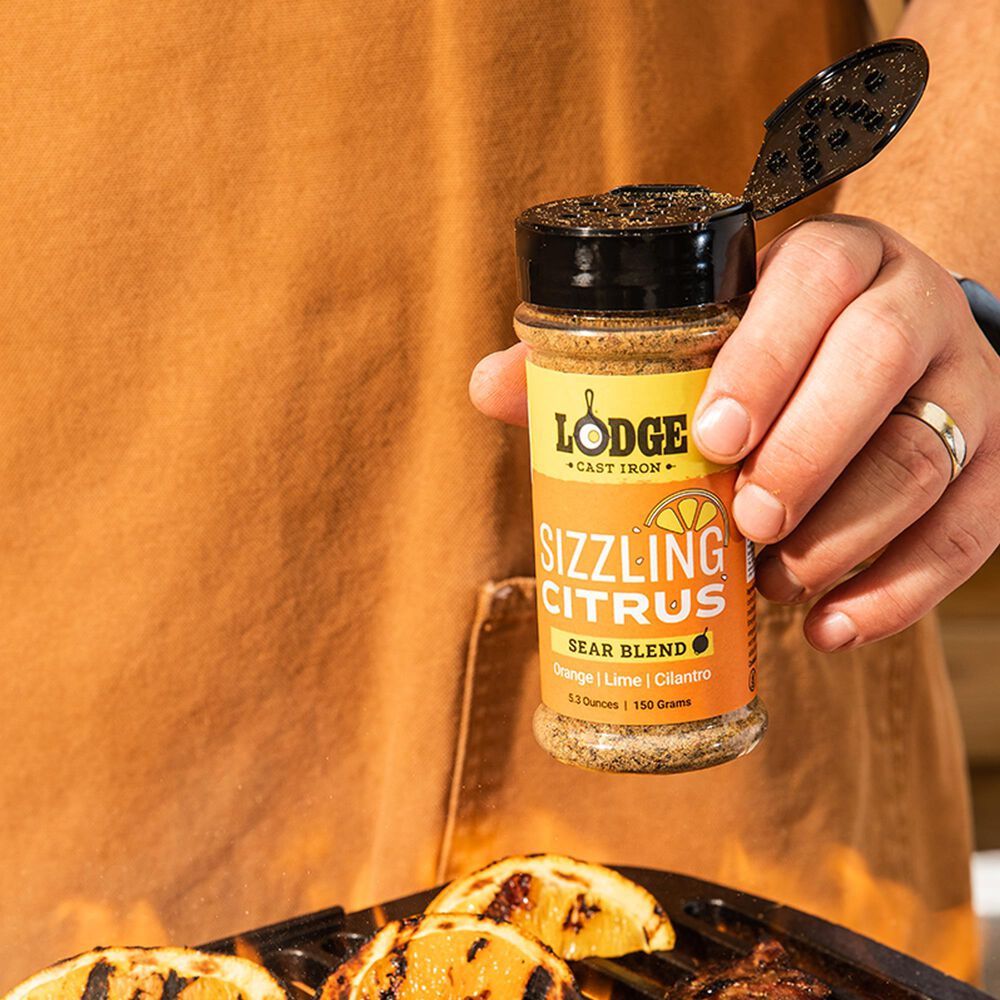 At Lodge, we have some pretty strong opinions about food. Our new sear blends bring over 125+ years of good eating (and heated debates) to the table, helping you pack big flavor into your favorite foods. Use them over the grill, stove, or even in the oven-all those places cast iron does its best work. Sizzling citrus is a heat-seeking blend that plays well with seafood and poultry (or anything that loves a bit of zing). Add a sizzling twist to your favorite seared foods with a blend of orange, lime, and cilantro.