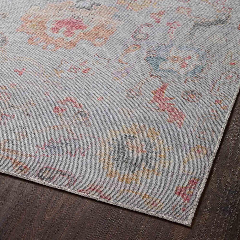 Area rugs in the Elysium collection have a loose and dreamy botanical design with a beautifully faded old-world feel. This collection is power-loomed in Egypt of 100% polyester face.
