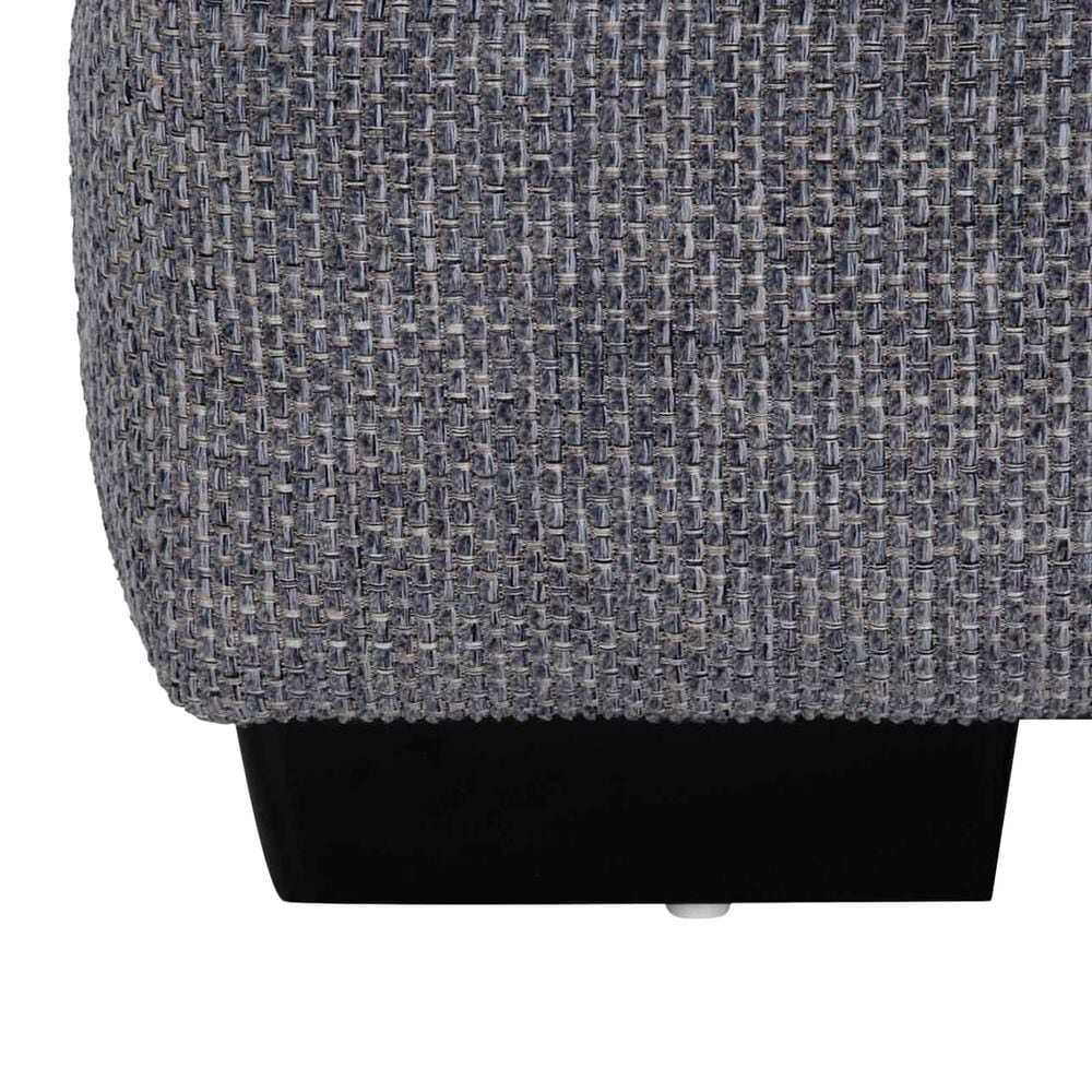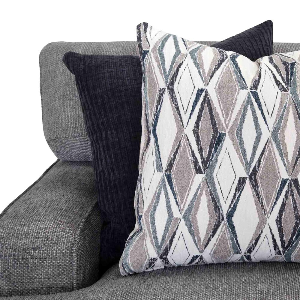 The Juno stationary collection features a transitional style in crosby denim, a medium gray polyester fabric with accented throw pillows. Includes sofa only.Features