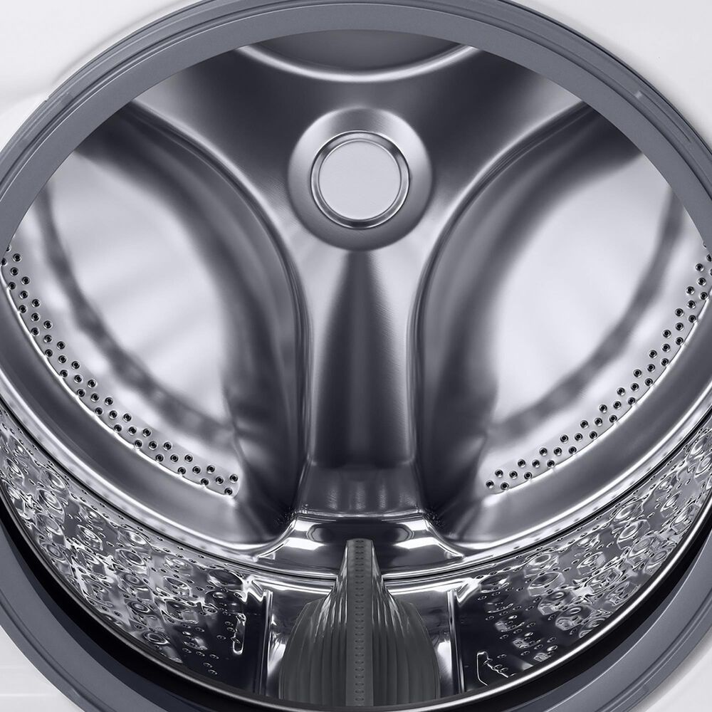 This Front Load washer offers Vibration Reduction Technology+ and Self Clean+ to eliminate 99% of bacteria from the drum. Our large capacity, 4.5 cubic foot drum means you can wash more items in a single load and spend more time doing the things you love. Keep your washer fresh and clean with Self Clean+ technology, which eliminates 99% of bacteria* that can form in any washer drum. Self Clean+ will notify you every 40 wash cycles when it is time for a cleaning. Easy troubleshooting from the convenience of your smartphone. Smart Care interacts with your washer and dryer to perform an immediate diagnosis and offer quick solutions. Improved drum pattern extracts more water more quickly during the rinsing cycle and prevents fabrics from snagging during washing. Give your home a sleek, modern look with a seamless design. This washer has a shallow depth, so it fits within your existing laundry space without sacrificing any capacity, thanks to our new, wider drum. Also, a new control panel design provides better visibility, so it is easy to use even when stacked. Check to make sure your appliance will fit and that your home is accessible for delivery. Dimensions: 27"W x 38.7"H x 31.3"D.