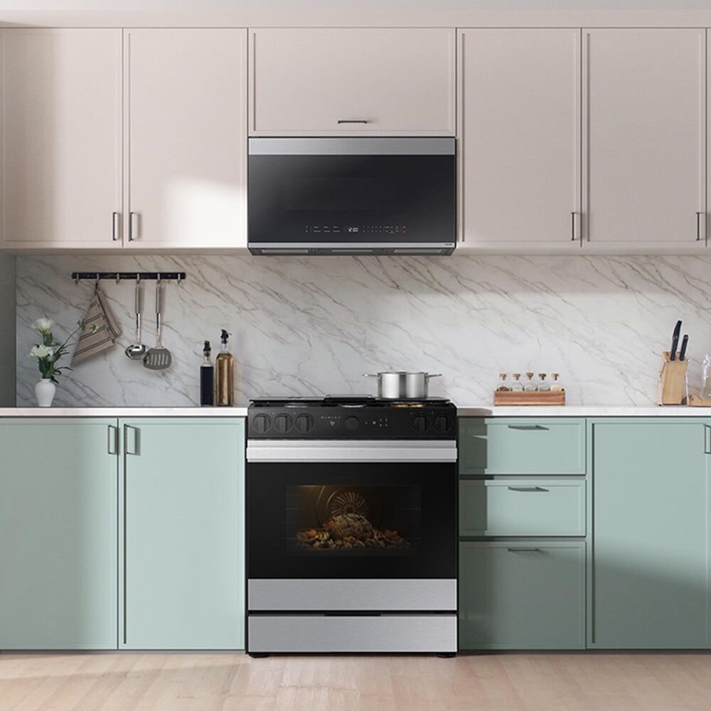Samsung Bespoke Bespoke 6.0 Cu. Ft. Smart Slide-In Gas Range with Non-stick Griddle and 18K BTU Brass Burner in Stainless Steel