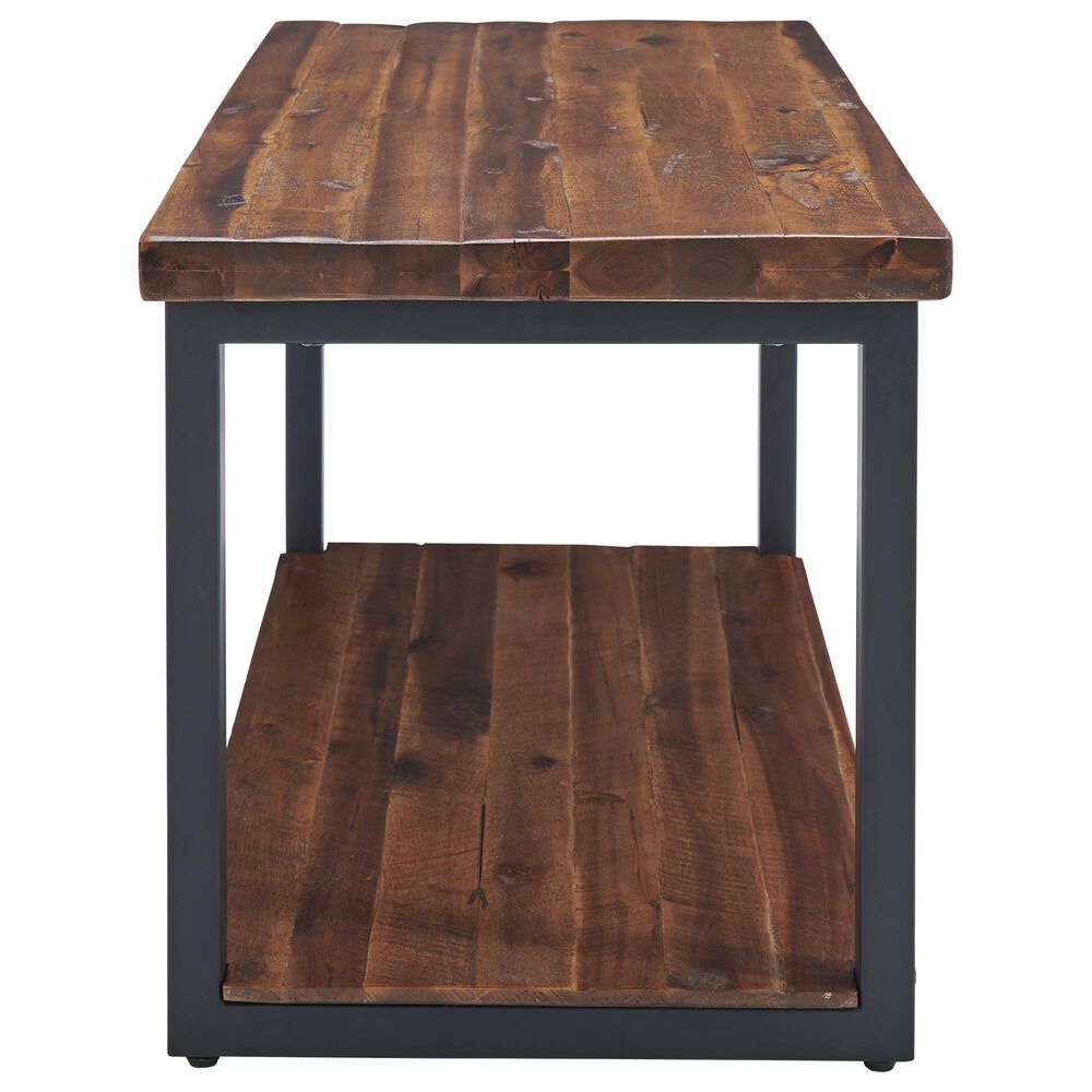 This collection of rustic wood and metal provides unpolished elegance to your space. With functional drawers and a low shelf each piece is uniquely yours. Knots, cracks and even rough-hewn edges showcase the wood's original qualities. Our lacquer finish with light and dark tones allows for the wood's natural grain to show through. This collection will make a statement in your living space.Features