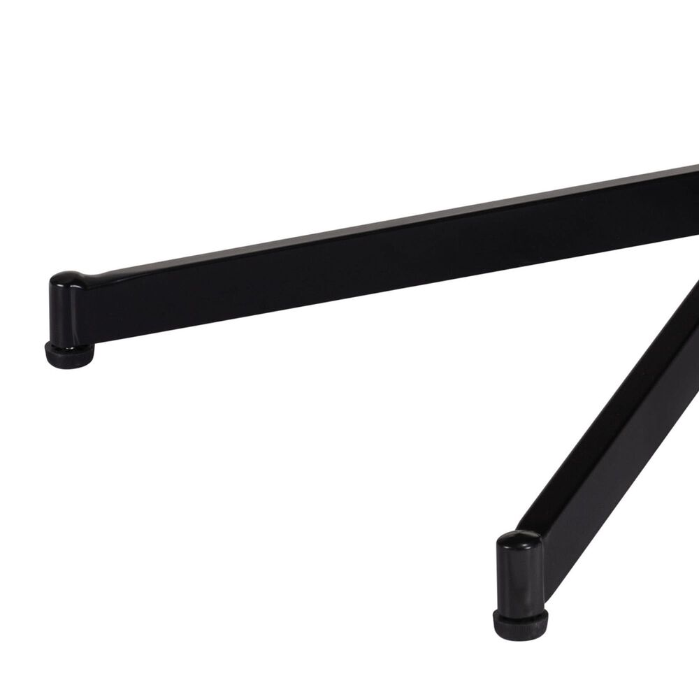 The Mazzy Coffee table has laminate MDF top with a height adjustable powder coated steel base. This piece looks great in any modern space, residential or commercial.
